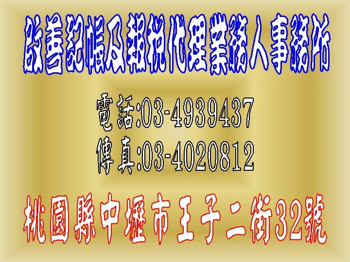 服務內容:會計稅務-工商登記-帳務代理-稅務顧問諮詢-記帳-會計事務-帳務處理-稅務申報-會計帳務-稅務記帳-公司登記-公司設立-公司行號-變更登記-營業登記-稅務諮詢-工廠登記-設籍課稅-網路開店-網拍登記-網路設立登記......等有關業務。